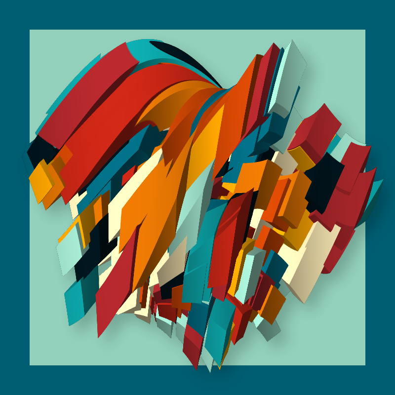 A line runs through a 3D animation and freezes the pixels at its level. This results in a distortion effect giving the initial objects twisted and strange shapes.