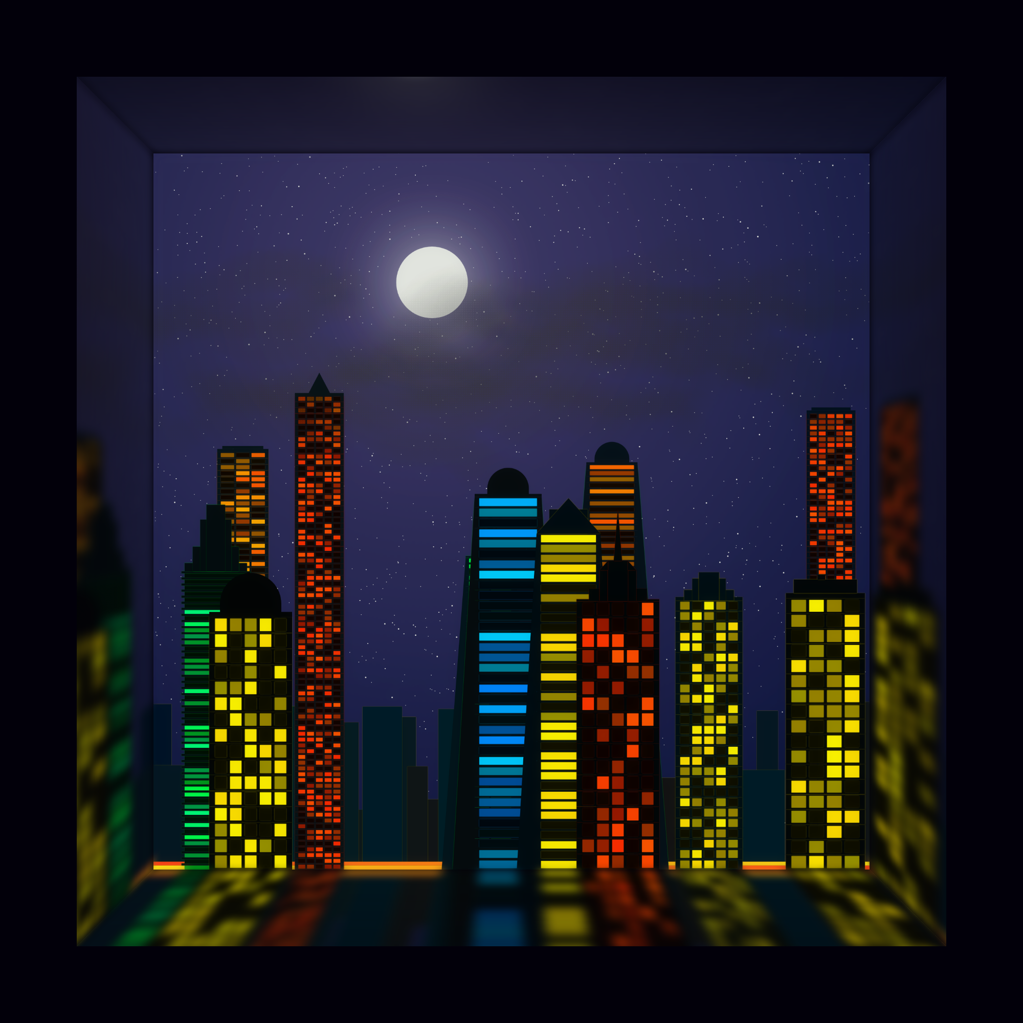Window to yourself represents two cities facing each others. You can see by the window what can be seen by any window of the builings of the city facing yours. There are too many features in this piece to list them all... No library used.