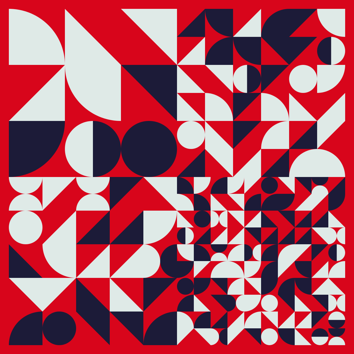 A collection of random geometric shapes, in random order on a pre-defined space There are 12 palettes of wonderful colors