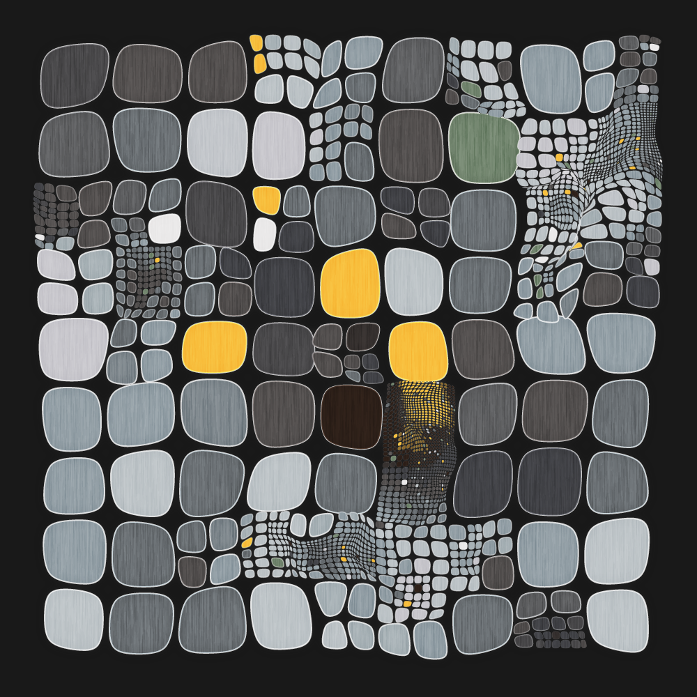 warpGrid uses noise fields to subdivide, warp, and color a plane. For each iteration, separate noise fields are used to perform each action.