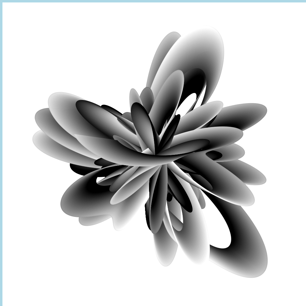 This generative piece can run for a long time, and because the ribbon tones varies between light and dark it will constantly evolve without becoming over saturated.
