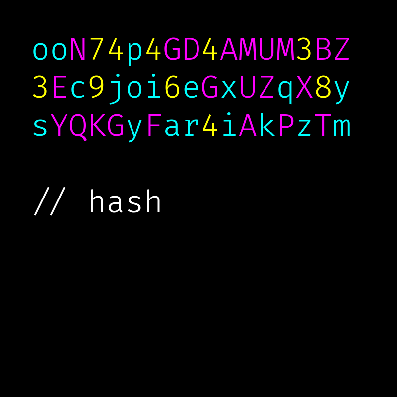 Displays a colorful version of the unique hash together with some basic stats: