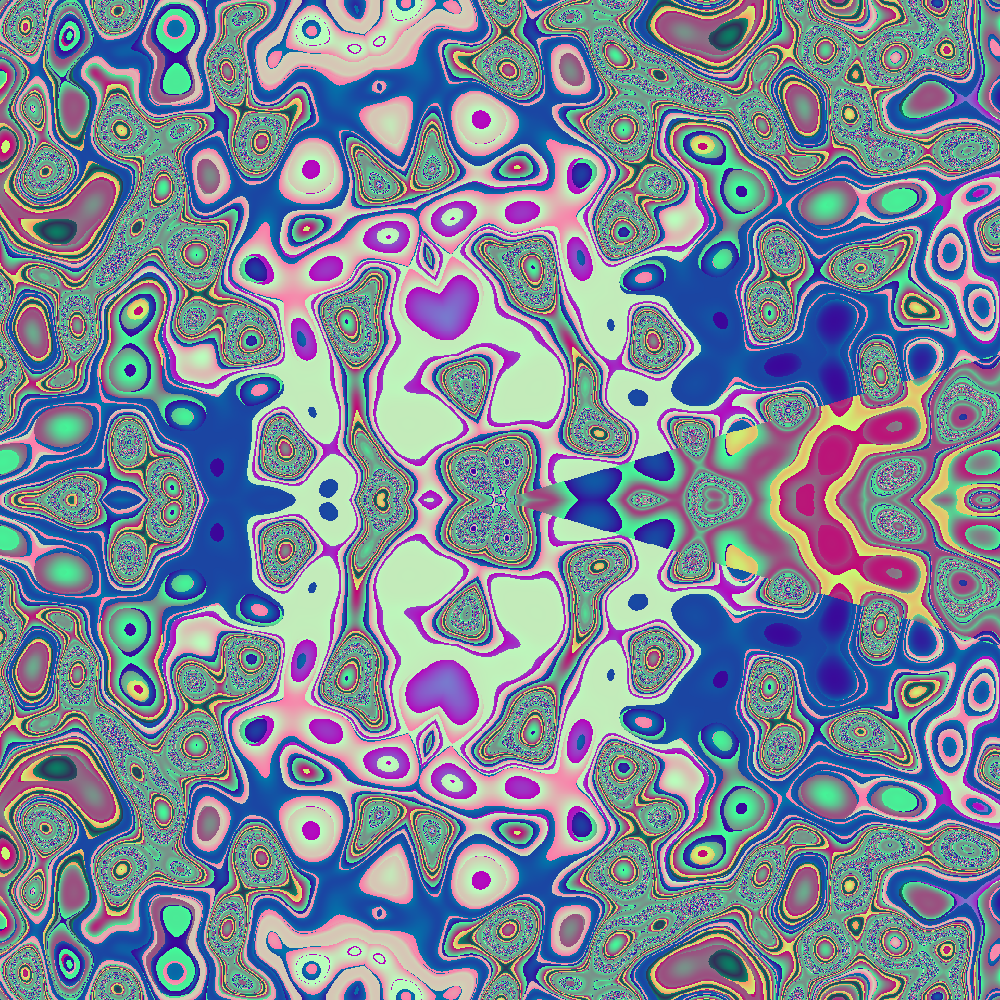 Fire Obsidian is is a rare form of volcanic glass that iridescent looking stones. This artwork attempts to mimic the natural phenomenon, using bright colors and a kaleidoscope effect. The color scheme is determined by the randomly assigned hash, with a possibility for a rare inverted version.