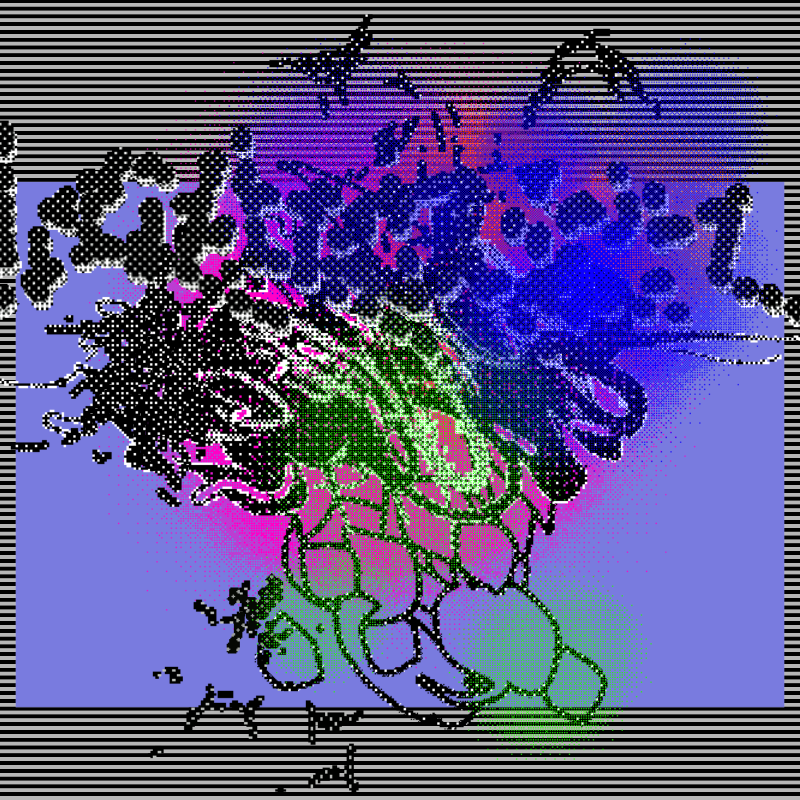 With this token you can mint a series of each-time unique, pixel-dither graffiti-like compositions, put together via an algorithm that is randomly “shuffling” the [pre-prepared] animated GIFs, background images and sometimes colours.