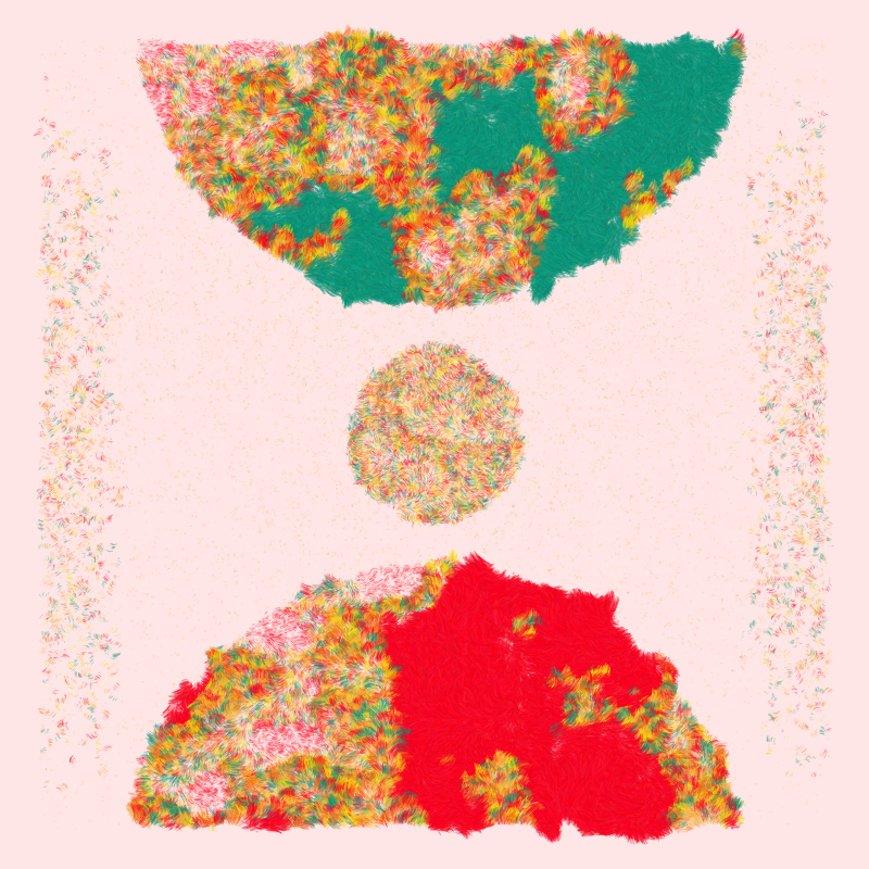 The brush draw is determined by angles, shapes, randomly chosen overdraws, brush sizes and widths, among other things.