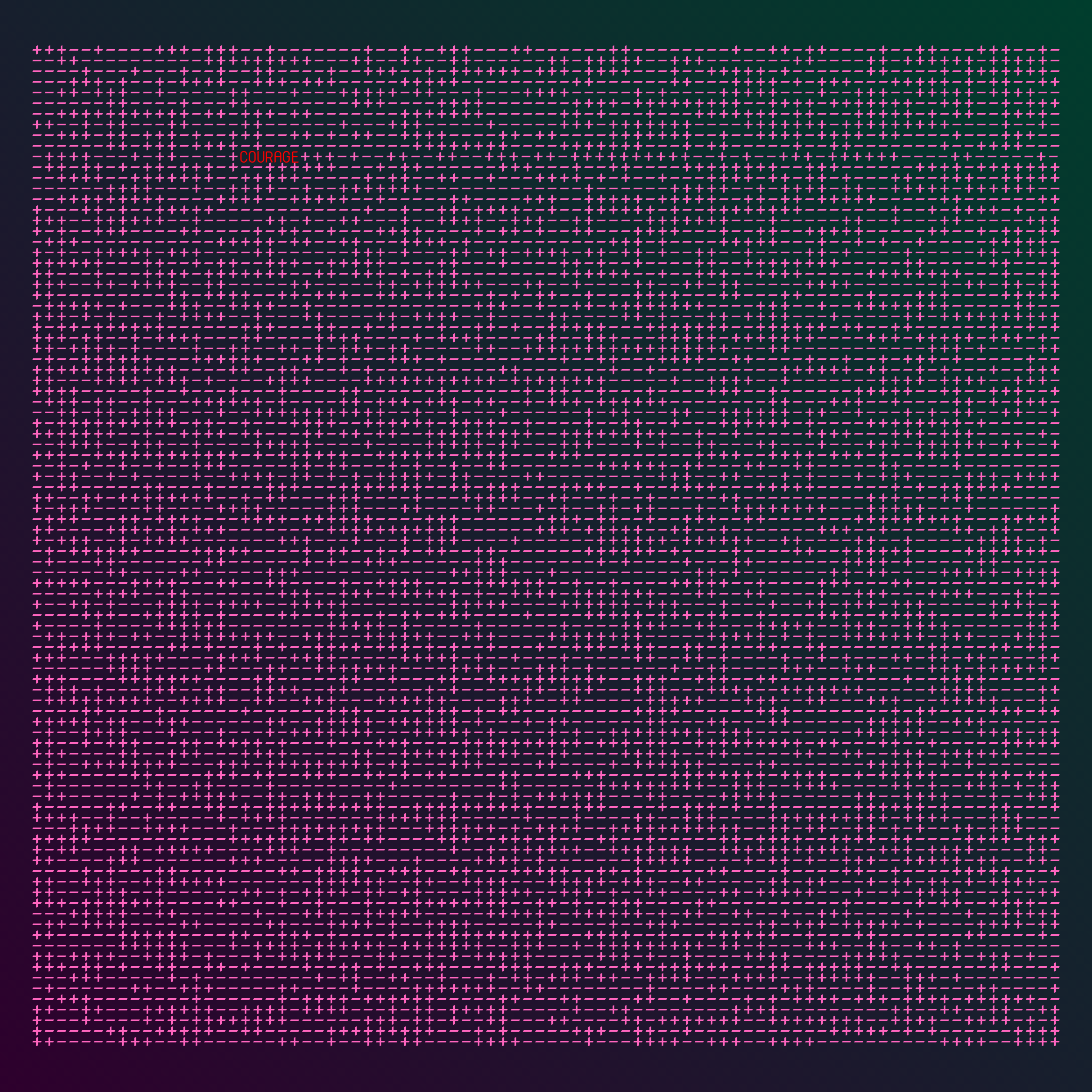 Each generation has a unique background and foreground color, as all codes are randomly generated. The COURAGE position changes as well.
