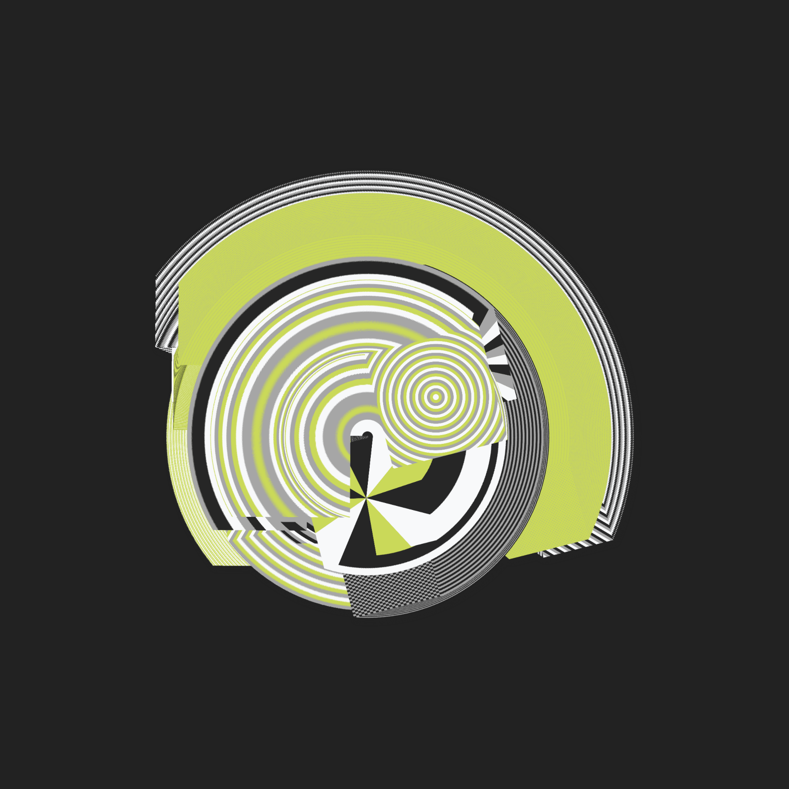 * 15 different palettes * 8 different patterns * 3 different backgrounds (white, black, a random color of the selected palette) * press 'h' to save a high resolution PNG (5x your window resolution)