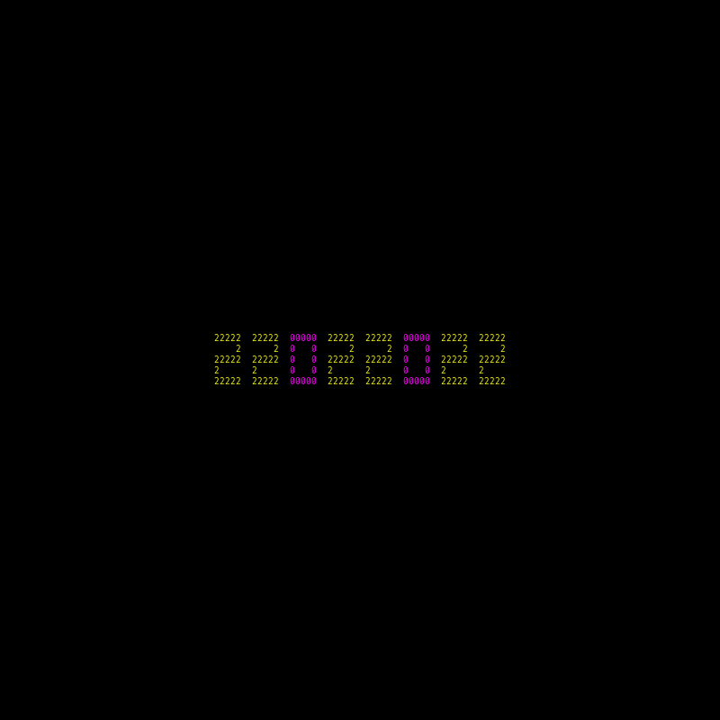 This artwork draws the date in a seven-segment display style with the digits 2 and 0 only. Some variations use special characters and different color schemes.