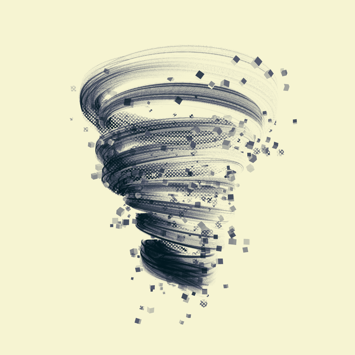 UPDRAFT seeks to reproduce the beauty of tornadoes and other vortices in a minimalist style and simple shapes, thus highlighting the purity of the lines of these fascinating objects.