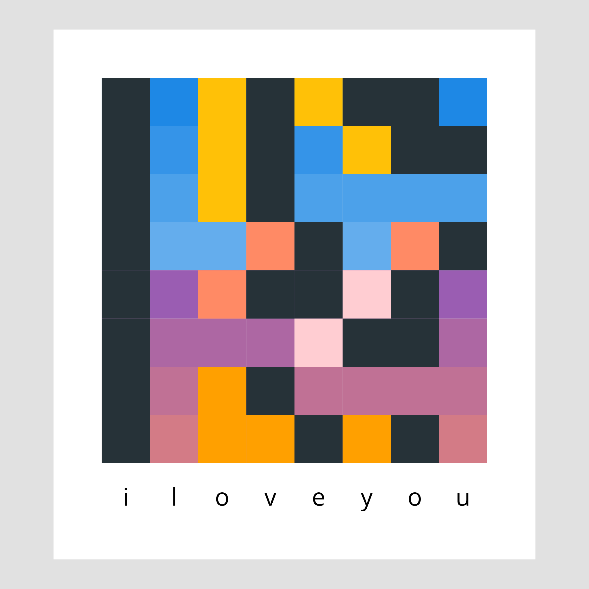 I drew my first 8x8 pixel binary image on 11/08/2022 with 'iloveyou' encoded for my wife, it was our 10-year anniversary on this day. After that made this generative stuff for fxhash's birthday bash.