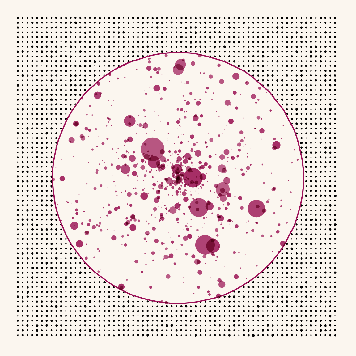 It's a collaboration between the computer and me. I tried to teach them to draw like a human artist, with all the imperfection that it means, and they tried to teach me to draw as a computer artist, with all the perfection that it means. The result is a cluster of approximative dots, jiggly lines and perfect bubbles, highlighted by colors carefully selected by them and me, after a long night of review, arguing and drinking red wine.