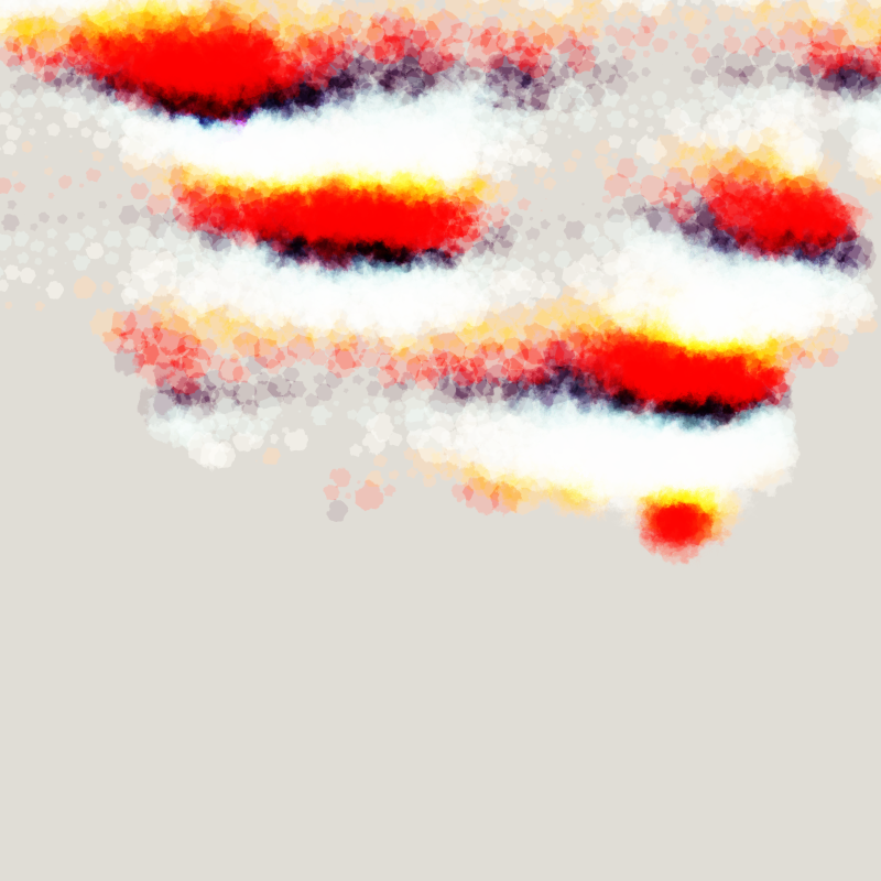 Points are generated based on a noise function, layers of color are added based on values from the same function.